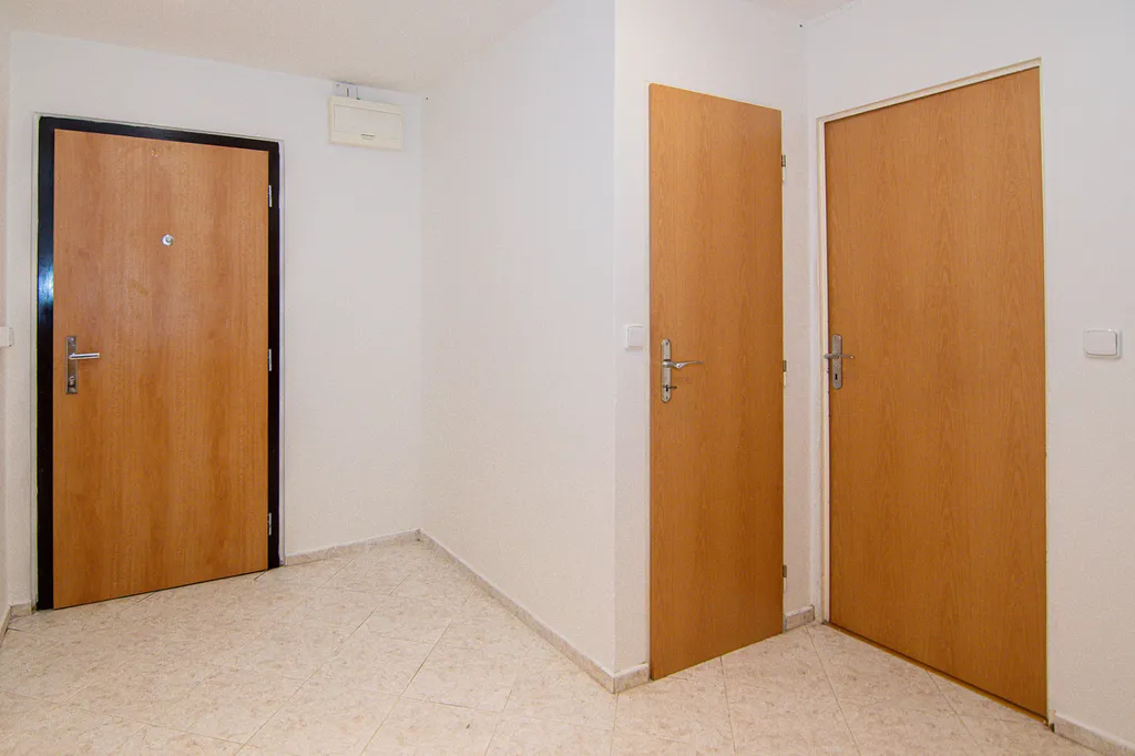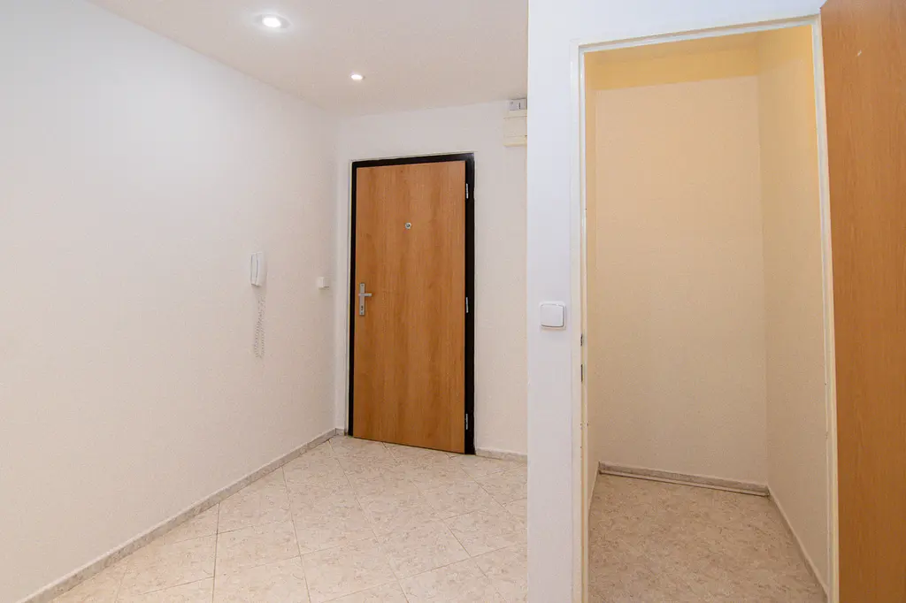 Byt je světlý a prakticky řešený. Je zde dostatek úložného prostoru včetně komory na chodbě.
