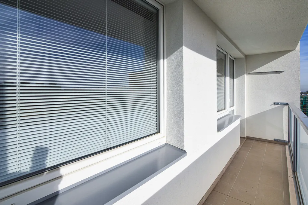 Okna jsou plastová s žaluziemi. Lodžie je umístěna po celé šíři bytu. Výhledy jsou do širokého okolí a zeleně.