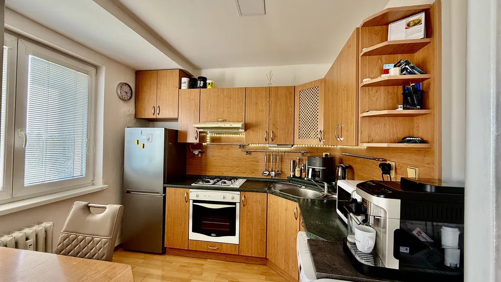 Byt působí vzdušně a díky umístění ve vyšším patře je krásně prosvětlený po celý den. Velkým benefitem je balkon s výhledem na obchodní centrum Futurum, ideální pro ranní kávu nebo večerní odpočinek.