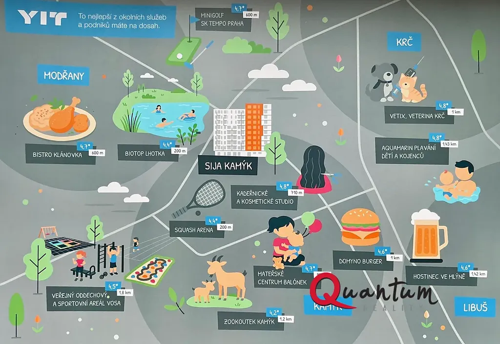 Kamýk patří mezi vyhledávané rezidenční lokality díky kombinaci klidného prostředí a výborné dostupnosti.