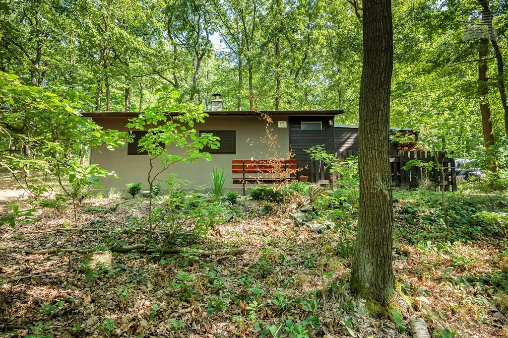 Interiér nabízí obývací pokoj s kuchyňským koutem, dvě samostatné ložnice a koupelnu. Chata je plně vybavena a připravena k okamžitému nastěhování. Součástí venkovního prostoru je příjemné zahradní sezení orientované do zeleně, které poskytuje klid, soukromí a ideální prostředí pro odpočinek na čerstvém vzduchu. K dispozici jsou také dvě parkovací místa přímo u chaty.