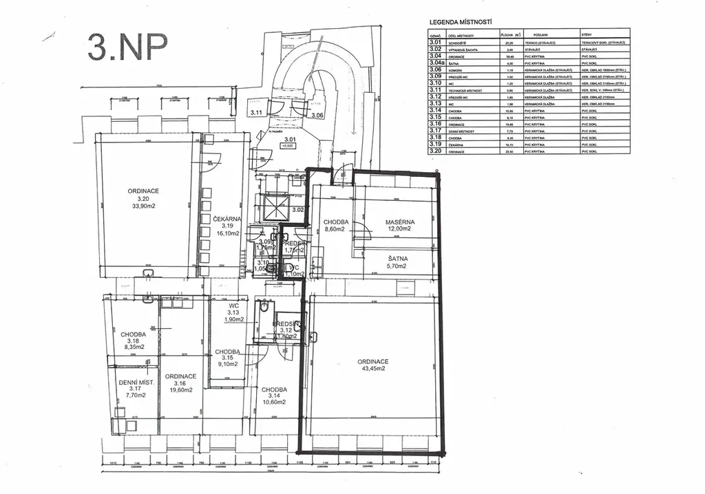 Nachází se ve 3. nadzemním podlaží zděné budovy s výtahem, která prošla kompletní rekonstrukcí.