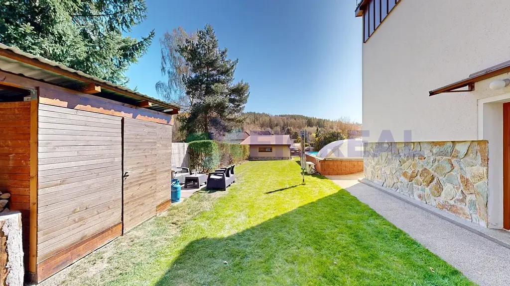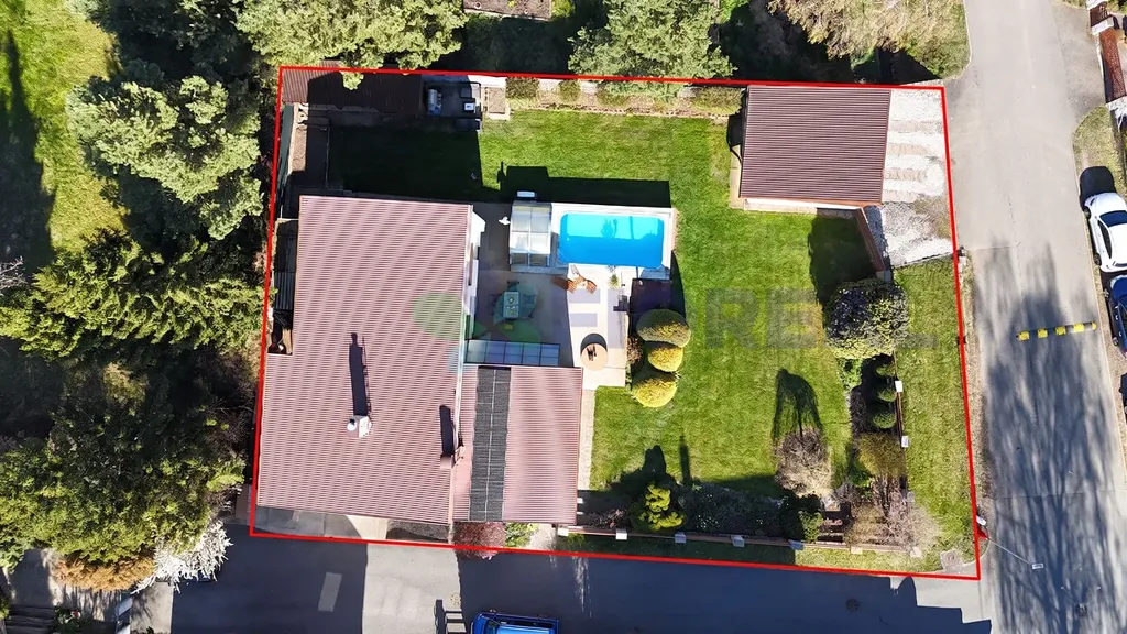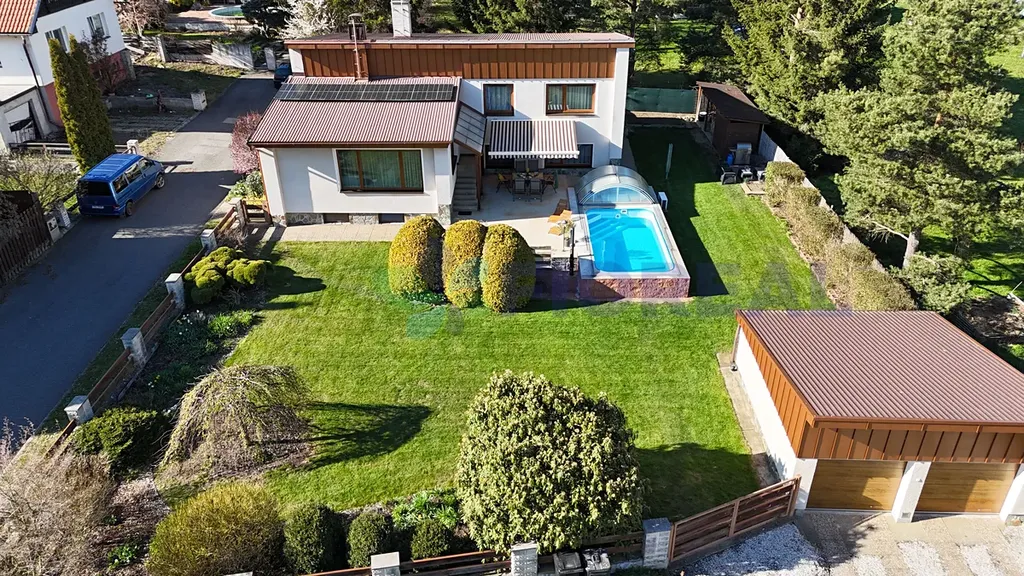 K parkování slouží prostorná garáž (36 m²), která pohodlně pojme 2 auta, další 2 parkovací místa jsou k dispozici přímo před garáží.