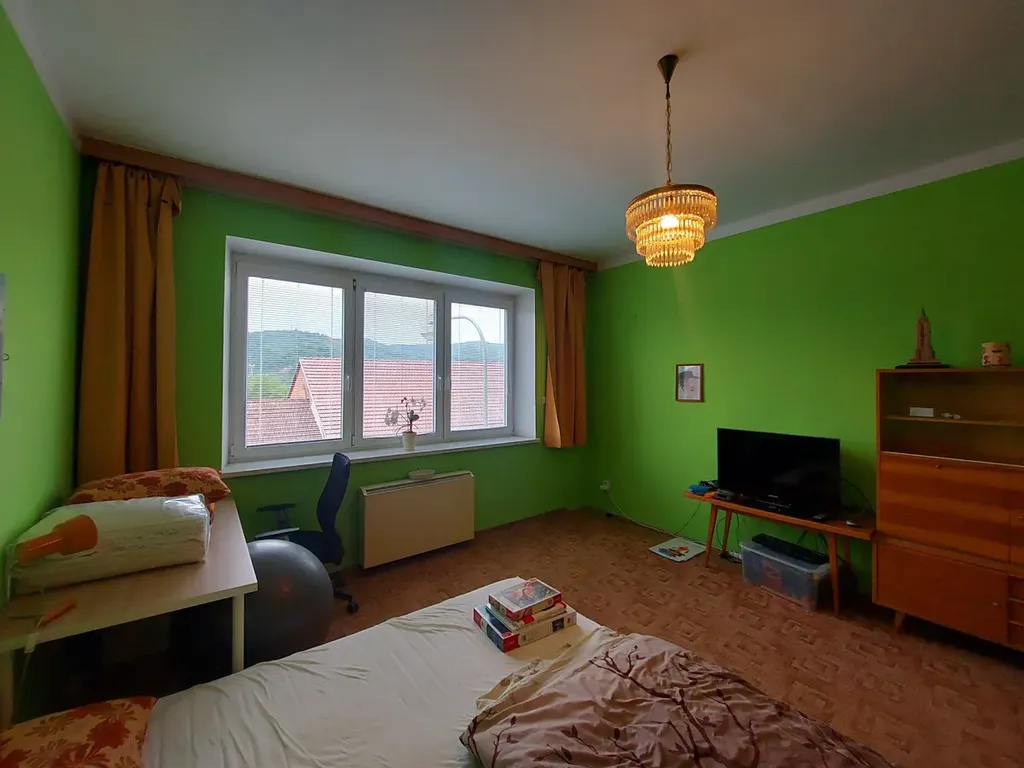 Nabízíme k pronájmu byt 2+kk situovaný ve 2. patře cihlového bytového domu. CP bytu činí 58 m2, tvoří jej předsíň, kuchyně s komorou, pokoj, koupelna, WC a balkon. V bytě zůstávají skříně v předsíni, knihovna v pokoji, lednice v kuchyni. Pokoj je orientován do ulice Jungmannova, obytná kuchyně s balkonem do dvora. Ohřev vody je zajištěn elektrickým bojlerem, vytápění elektrickými akumulačními kamny. Volné od 15.5.2026. Majitel požaduje kauci v výši 26.200,- Kč.