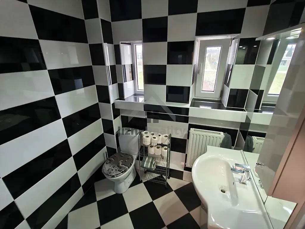 Dům je podsklepený a suchý, je ve výborném stavu a nádherně vybavený. Ve sklepích se dají udělat další volnočasové místnosti. V prvním patře se nachází krásná a prostorná kuchyň, na níž navazuje velký obývací pokoj. Následují další tři menší pokoje a koupelna s WC a samostatné WC.