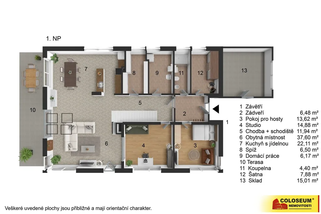 • Zahrada a terasa: 498 m²