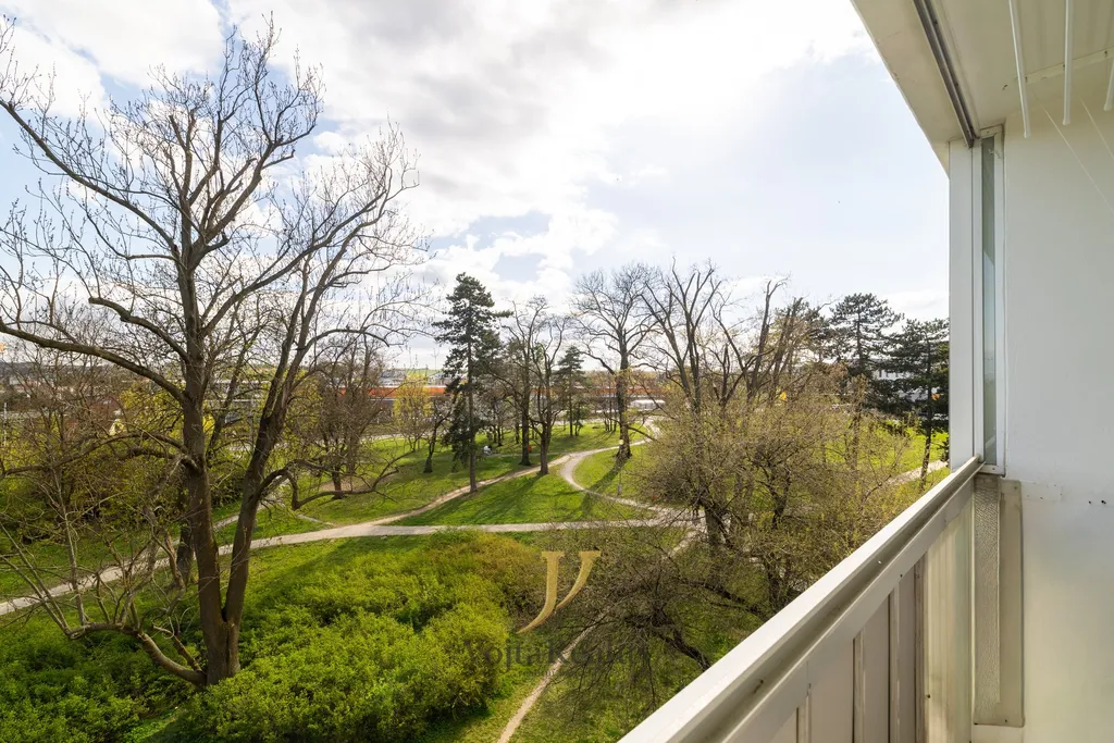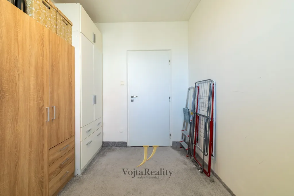 K bytu náleží zasklená lodžie a sklepní kóje (2 m²) zabezpečená ocelovou mříží.