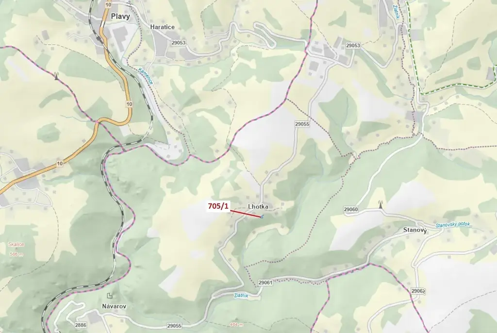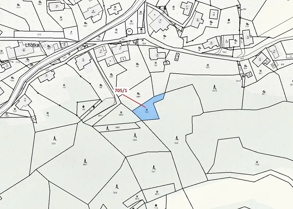 Trvalý travní porost o výměře 438 m2, parcelní číslo 705/1, podíl 1/1, katastrální území Lhotka u Zlaté Olešnice, obec Zlatá Olešnice, obec s rozšířenou působností Tanvald, okres Jablonec nad Nisou, Liberecký kraj.