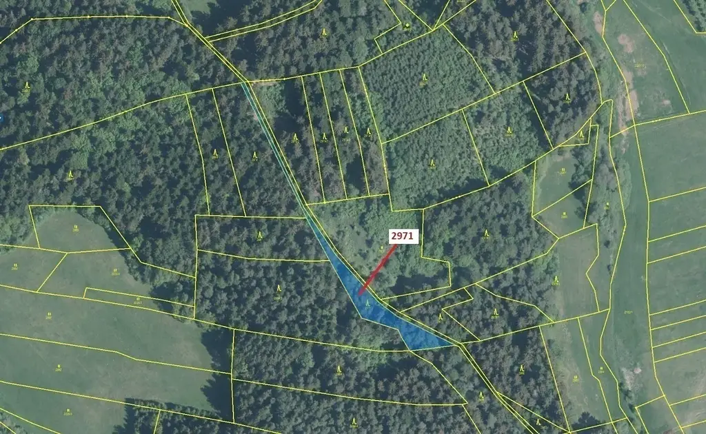 Lesní pozemek o výměře 1723 m2, parcelní číslo 2971, podíl 1/1, katastrální území Lačnov, obec Lačnov, obec s rozšířenou působností Vsetín, okres Vsetín, Zlínský kraj. Po těžbě.