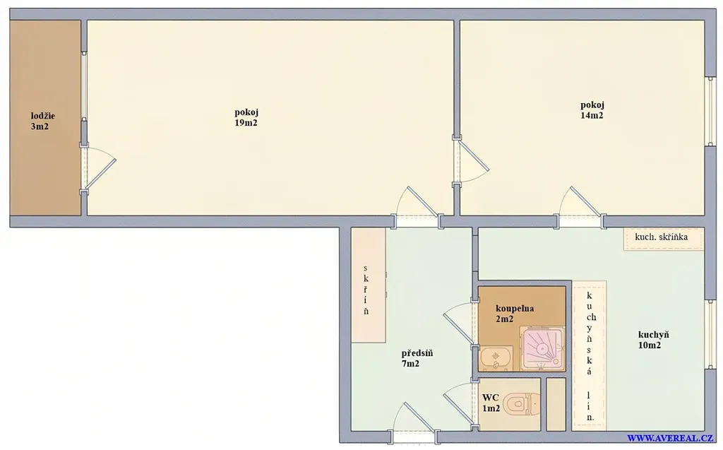 Byt je ve velmi dobrém stavu a díky samostatné kuchyni a dvěma neprůchozím pokojům poskytuje dostatek soukromí pro jednotlivce, pár i spolubydlení. Interiér je světlý, vzdušný a prakticky řešený. Podlahy tvoří dlažba a PVC, okna jsou plastová a zdi štukované, což přispívá k celkově čistému a udržovanému dojmu.