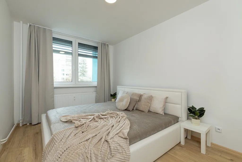 Bytová jednotka prošla v roce 2025 kompletní rekonstrukcí a nabízí moderní, čisté a praktické bydlení bez nutnosti dalších investic. Dispozice tvoří vstupní chodba s prostornými vestavěnými skříněmi, nadstandardně řešená koupelna s dostatkem místa pro pračku i sušičku, dále obývací prostor propojený s kuchyní vybavenou veškerými spotřebiči, samostatná ložnice a pracovna, která může sloužit také jako dětský pokoj nebo pokoj pro hosty.