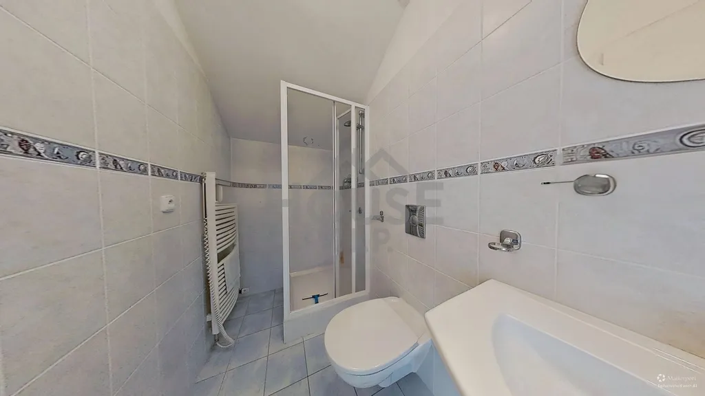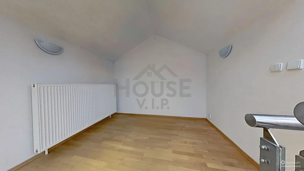 Byt je ve velmi dobrém stavu, částečně vybavený a nabízí komfortní zázemí pro moderní bydlení. Dispozice zahrnuje obývací pokoj, plně vybavenou kuchyni (lednice s mrazákem, myčka, elektrická trouba, mikrovlnná trouba, sporák, pračka), tři ložnice, pracovnu v patře, zimní zahradu, dvě koupelny se sprchovými kouty a WC, předsíň s komorou a spojovací chodbu.