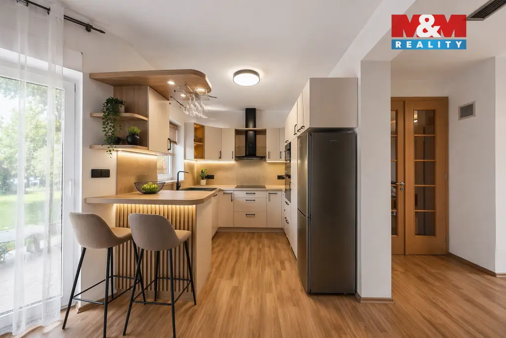 Součástí domu je i wellness zázemí – vnitřní bazén a sauna pro celoroční relaxaci. Komfort bydlení doplňuje rekuperace a praktická dvojgaráž.