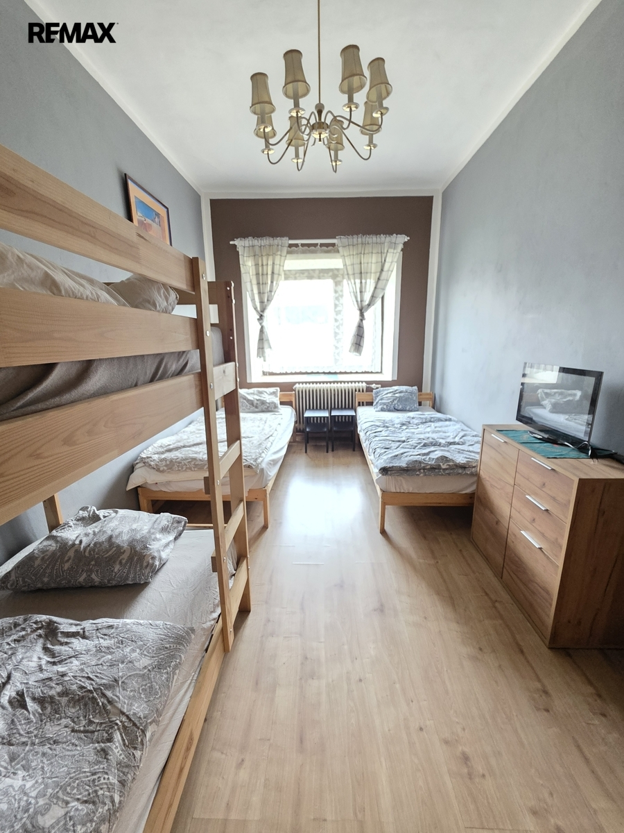 V přízemí domu se nachází vstupní chodba, prostorná obytná místnost s kuchyní, 5 obytných místností, koupelna se sprchou a dvěma toaletami a technická místnost.