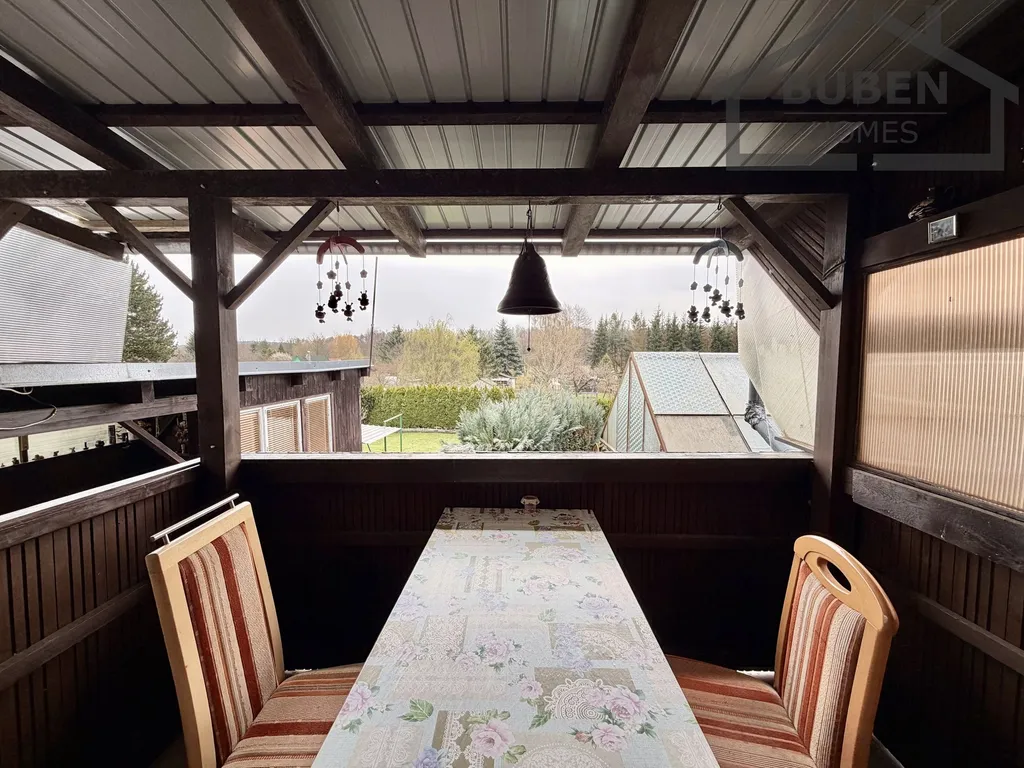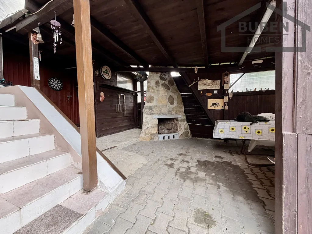 K příjemnému posezení a odpočinku slouží pergola s krbem a venkovní kuchyní. Na zahradě se dále nachází kůlna, zahradní sklad, WC (chemické), kotec pro psy, skleník, udírna a betonový základ pro umístění bazénu.