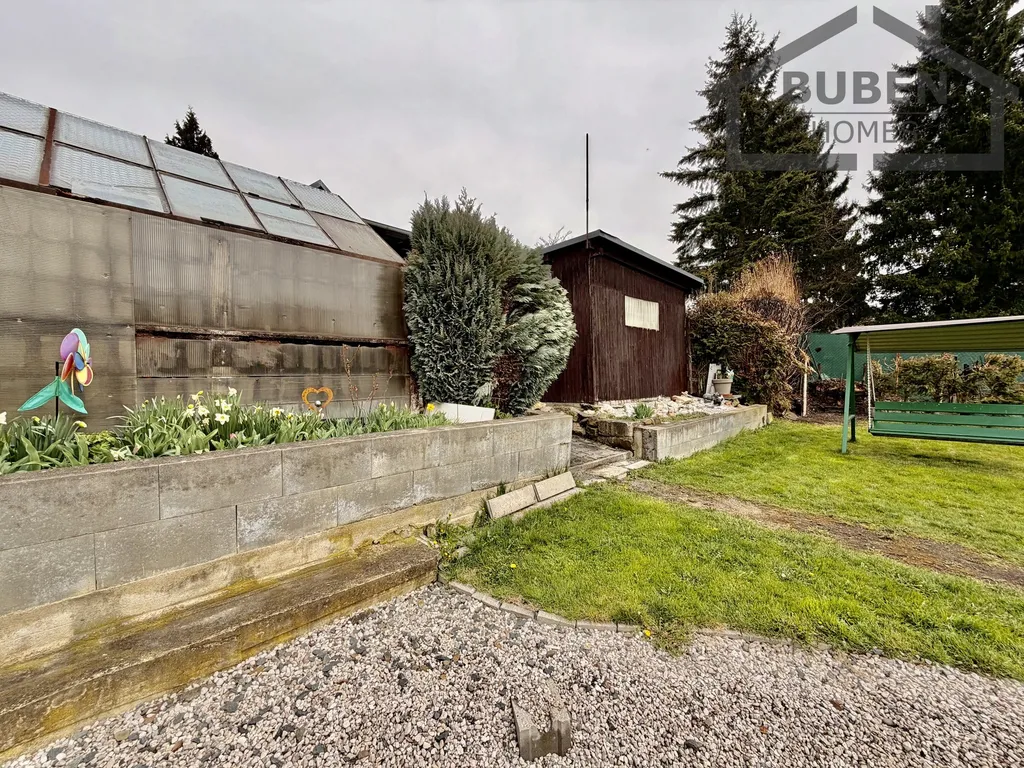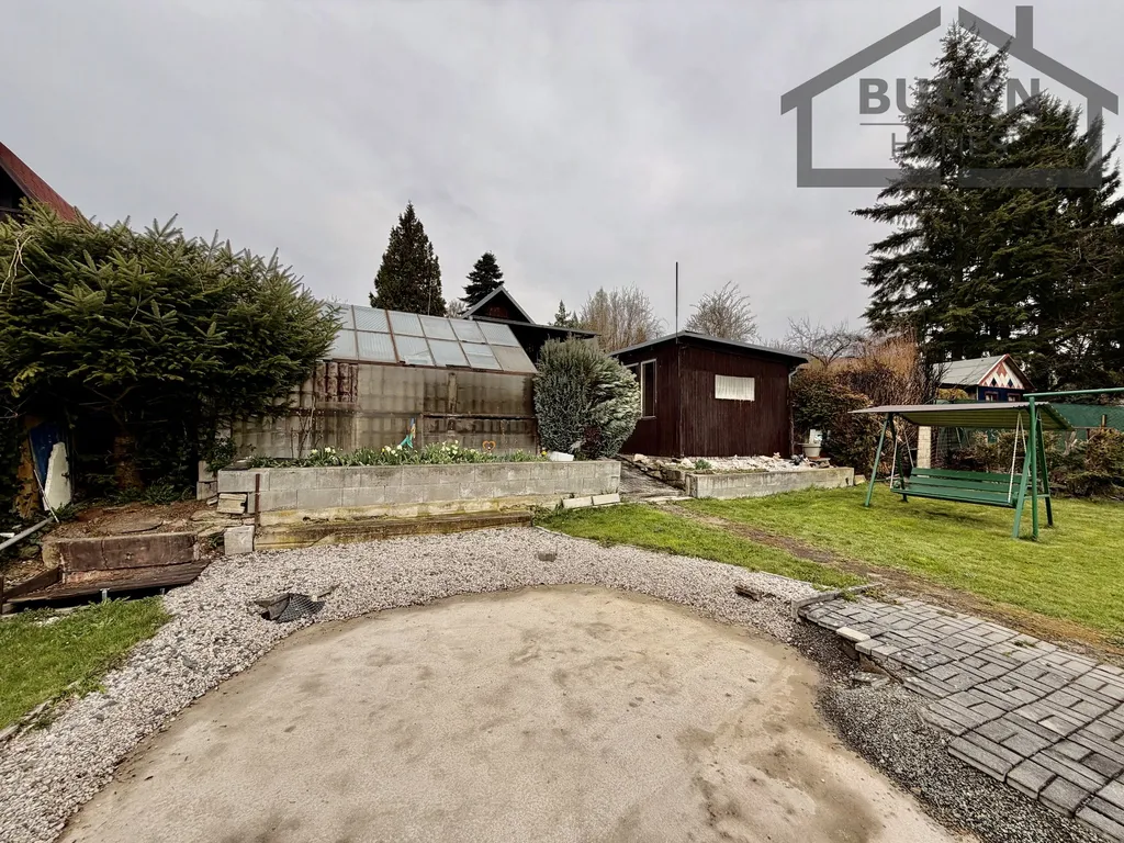 Zahrada s chatou se nachází v zahrádkářské osadě, v poklidné oblasti, v blízkosti minerálního pramene. Tato nabídka je zajímavou příležitostí k odpočinku a drobnému pěstování.