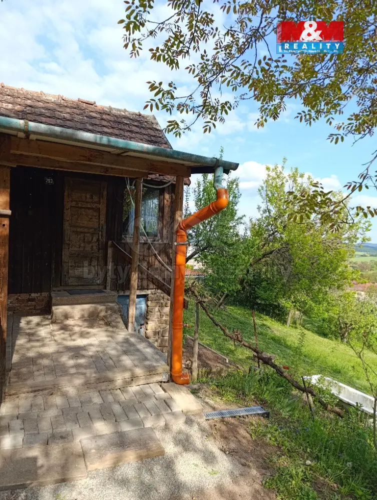 Na zahradě rostou ovocné stromy, je zde dostatek místa na pěstování i posezení. Parkování je možné přímo na pozemku. Chata je podsklepená.