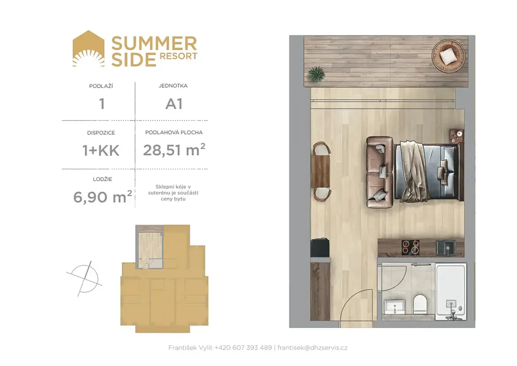 V klidné části Rokytnice nad Jizerou u hranice lesa nabízíme nový apartmán 1+kk o velikosti 28,51 m² s lodžií 6,9 m² v projektu Summer Side Resort. Jednotka díky západní orientaci lodžie nabízí příjemné soukromí i výhled do okolní přírody.