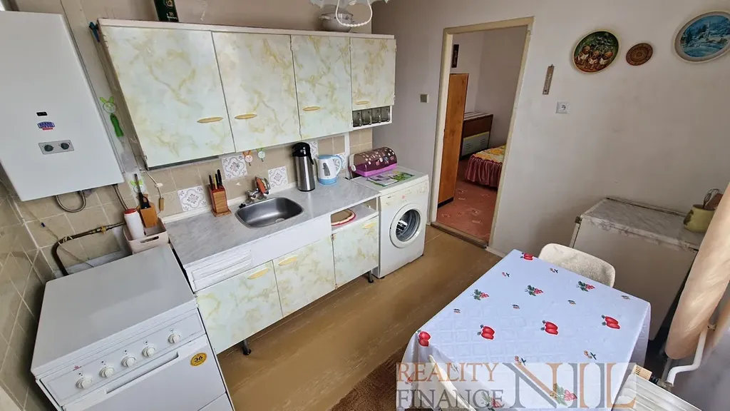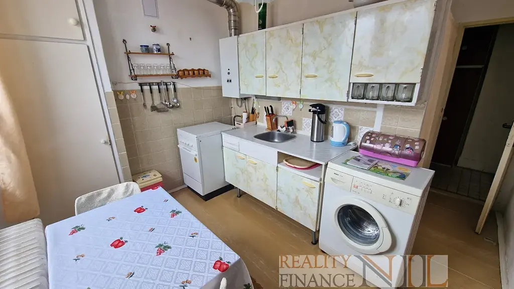 Byt je zařízený kuchyňskou linkou a starším nábytkem, který může zůstat nebo ho majitelé po dohodě vyklidí. Byt je v původním zachovalém stavu, vhodný pro vlastní rekonstrukci.