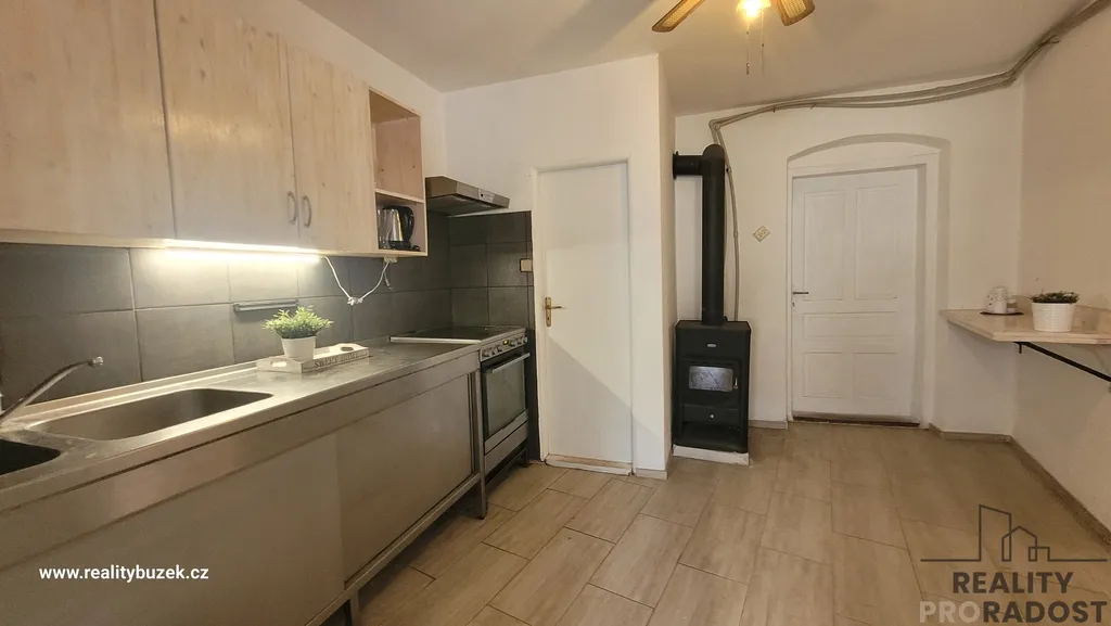 Za domem je malebná zahrada s vedlejšími stavbami-dvě dílny, dřevník. Na pozemku se dále nachází bazén o ploše 9 m², ideální pro osvěžení během letních měsíců.