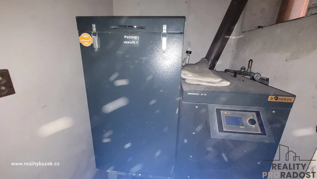 K vytápění objektu slouží kotel na tuhá paliva. Dům je také vybaven krbem s výměníkem, který přináší příjemnou atmosféru a možnost alternativního vytápění. což přináší úsporné a efektivní vytápění v chladnějších měsících.