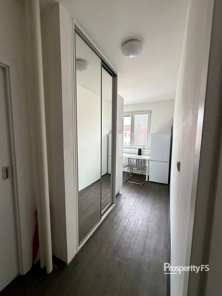 Byt prošel rekonstrukcí a nabízí praktické a komfortní uspořádání. Hlavní obytná místnost je chytře rozdělena na dvě části – spací zónu s postelí a obývací část s gaučem, což vytváří příjemný prostor pro každodenní život i odpočinek. Samozřejmostí je obývací stěna s dostatkem úložného prostoru.