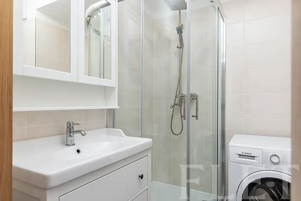 Je ve vašem hledáčku útulný a zařízený byt s balkónem v novostavbě? Pak právě pro vás máme tento krásný a skvěle dispozičně řešený byt v klidné lokalitě Praze - Řeporyjích. V pokoji s vybaveným kuchyňským koutem (sklokeramická deska, myčka nádobí, vestavěná lednice s mrazákem, digestoř) je vám k dispozici jídelní stůl i dvoulůžková postel s matrací. Svou ranní kávu si pak budete moci vychutnat na balkóně s výhledem do klidné zástavby. V moderní koupelně se sprchovým koutem a toaletou je vám k dispozici pračka. Součástí bytu je také praktická komora s šatní skříní.