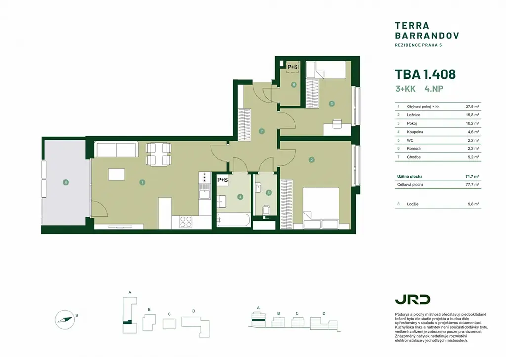 V případě zájmu nás neváhejte kontaktovat a navštivte klientské centrum developera JRD, kde si můžete prohlédnout vzorkovnu standardů i virtuální prohlídku projektu. V nabídce je celkem 225 bytů v dispozicích od 1+kk po 4+kk.