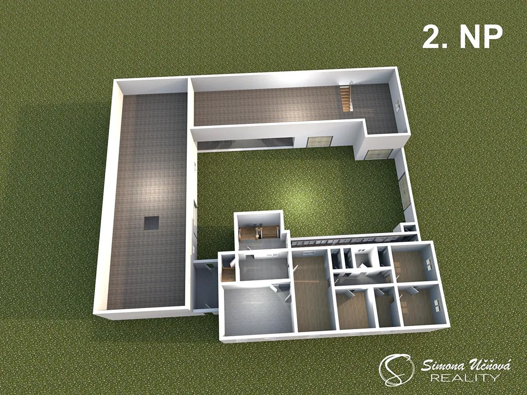 V 2. NP (cca 152 m2) se nachází byt 5+1 se dvěma spížemi a vstup do otevřeného půdního prostoru.