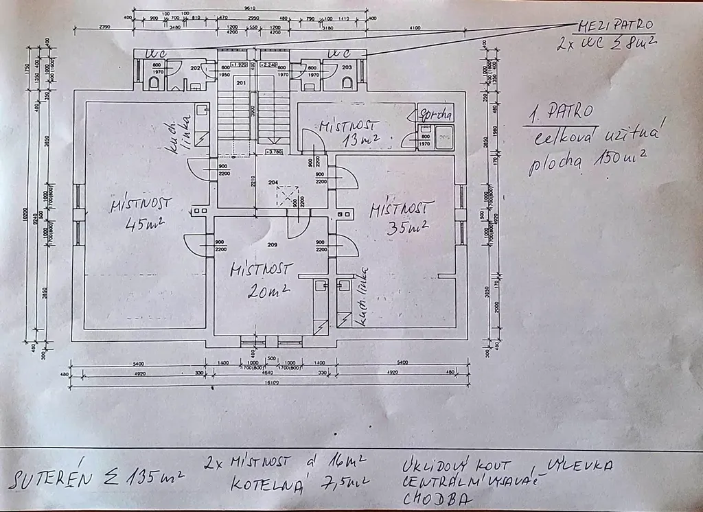 Mezipatro je řešeno pro 2 samostatné WC - dámské a pánské.