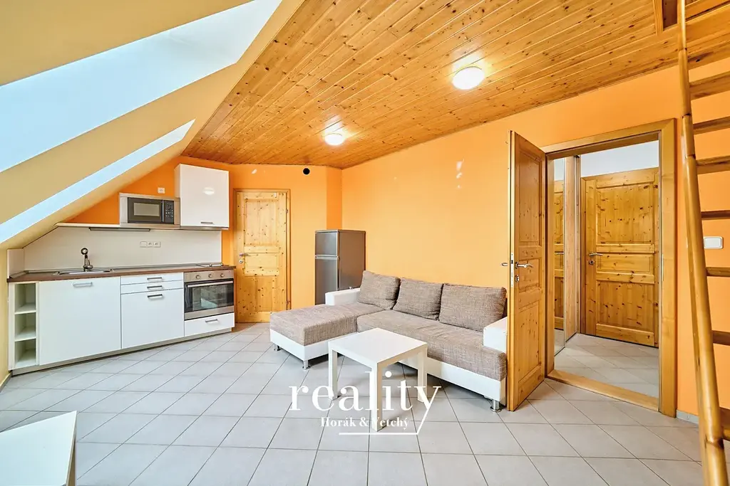 Nabízíme útulný byt 1+kk k pronájmu v atraktivní lokalitě Znojmo-Hradiště, na ulici Mašovická. Tento moderně zařízený podkrovní byt o velikosti 24 m2 se nachází ve velmi dobrém stavu cihlového rodinného domu se samostatným vchodem na 2. nadzemním podlaží. Je zde možnost parkování před domem nebo pro více aut na nedalekém parkovišti..