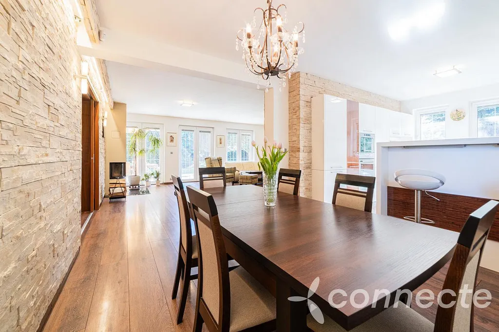 Poté, co zaparkujete ve své dvougaráži, můžete do domu projít přímo suchou nohou. Právě tady začínáte naplno vnímat maximální komfort, který je jednou z hlavních předností tohoto rodinného bydlení. Dominantou domu je velmi prostorný obývací pokoj s krbem, který působí útulně a přirozeně se stává centrem společného rodinného života. Z jedné strany na něj navazuje prostorný jídelní kout pro společné rodinné večeře a dále praktická kuchyň s vestavěnými spotřebiči. Z druhé strany obývacího pokoje se nachází vstup na prostornou terasu za domem, která nabízí ideální zázemí pro příjemně strávené letní večery u grilu s rodinou či přáteli. To vše opět v maximálním soukromí. Dům byl vybudován s důrazem na kvalitní materiály a funkční řešení, což je patrné na první pohled.