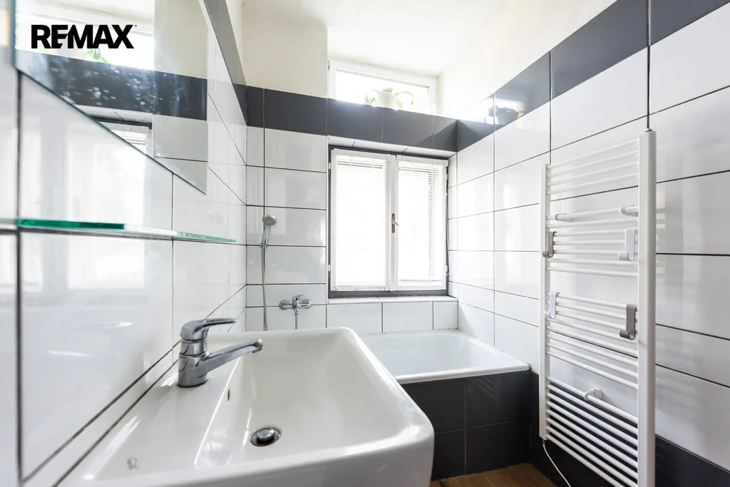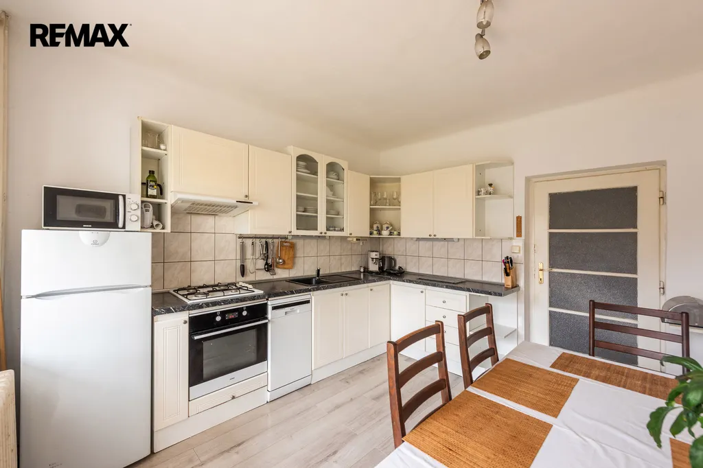 • patro: ze schodiště je vstup na jednu stranu do samostatného pokoje s oknem do ulice a na druhou stranu vstupy do koupelny s vanou a WC s oknem do zahrady a vedle do prostorné moderní kuchyně s terasou orientovanou do zahrady.