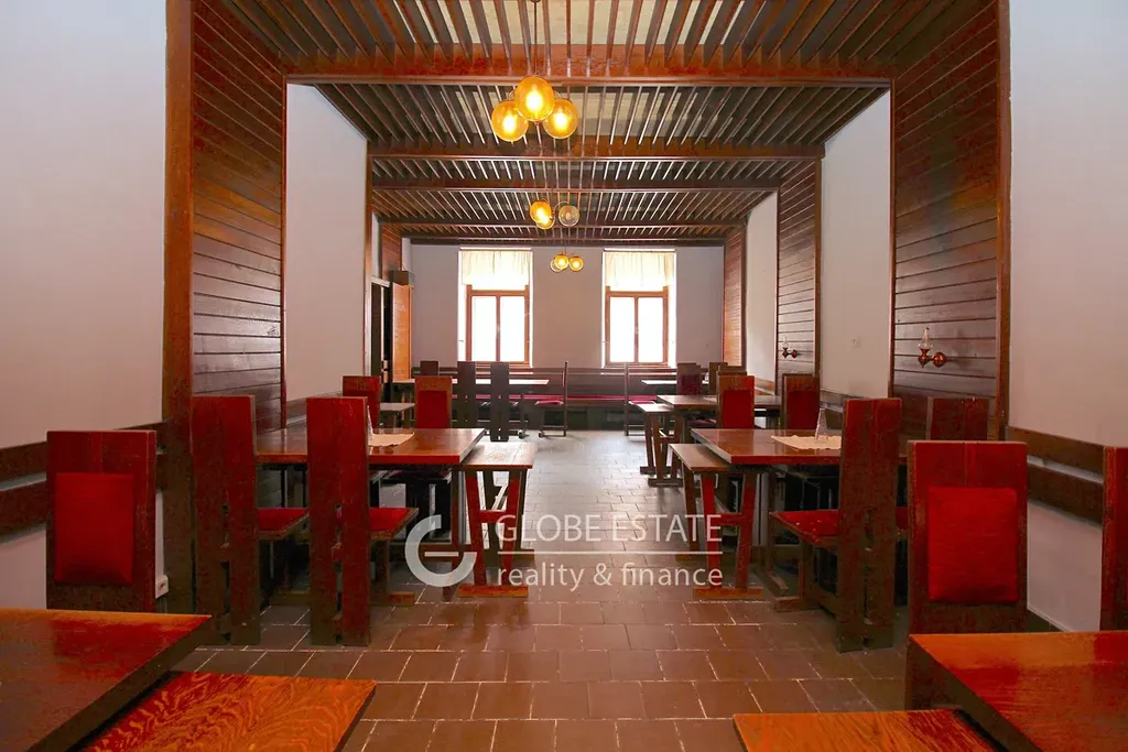 Současná struktura komplexu nabízí obrovskou flexibilitu a potenciál. Naleznete zde restauraci o velkorysé ploše přibližně 170 m2 a klep cca 60 m2, útulnou vinárnu o 55 m2, a dále kancelářské prostory o velikosti zhruba 60 m2, které disponují vlastním vstupem přímo z hlavní ulice, což je ideální pro viditelnost a dostupnost. Dále jsou k dispozici sklady a venkovní toalety o celkové ploše cca 55 m2, které doplňují funkčnost celého areálu.