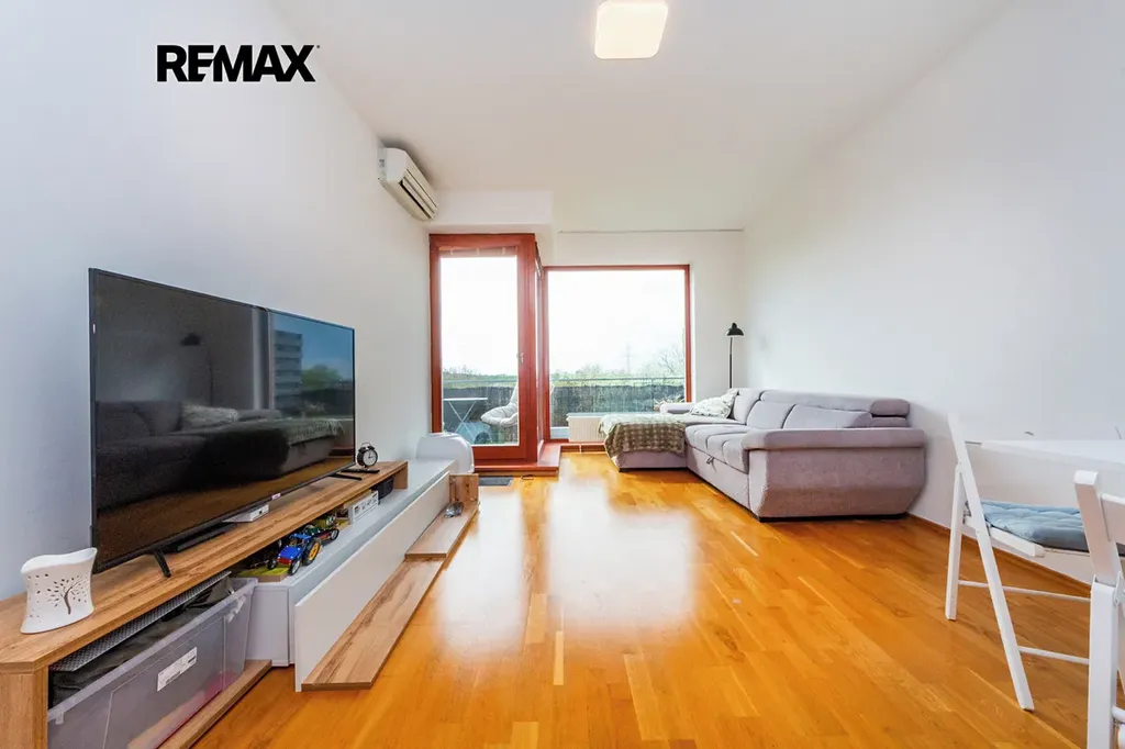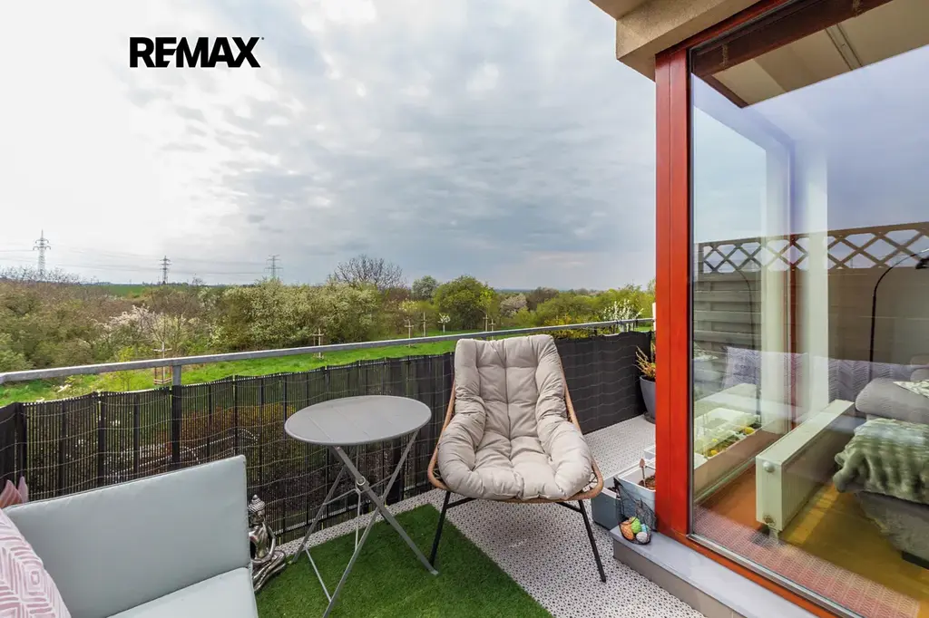 Dispozice bytu je velmi praktická. Vstupní chodba nabízí dostatek úložného prostoru, dále je zde samostatný pokoj s velkou vestavěnou skříní. Byt disponuje oddělenou toaletou s umyvadlem a prostornou koupelnou s vanou, kde se nachází pračka, sušička a také plynový kotel, který zajišťuje vytápění i ohřev vody. Dominantou bytu je obývací pokoj s kuchyňským koutem, ze kterého je vstup na velkorysý balkon s příjemným výhledem.