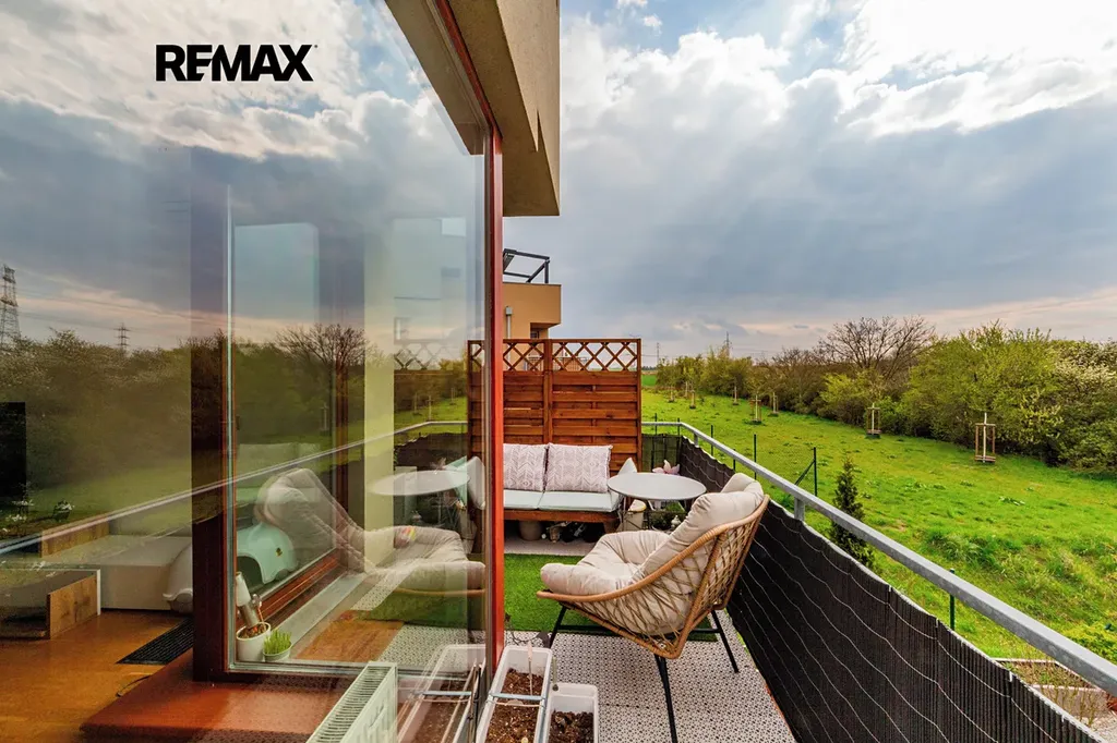 Byt se nachází ve 2. nadzemním podlaží a je orientován na západ, což zajišťuje dostatek odpoledního světla a především krásný výhled do zeleně. Tento výhled by měl zůstat zachován i do budoucna díky Hrušovickému potoku, který protéká v dané oblasti a brání další zástavbě.
