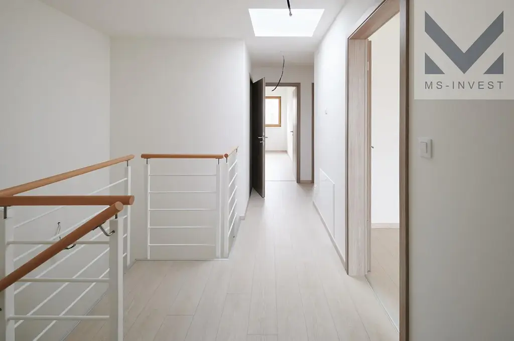 V rámci projektu RD Satalice se v nově vzniklé ulici Hubačova nachází nabízený středový dům 4+kk o celkové ploše 127 m2 Dům disponuje v 1. NP vlastní garáží, šatnou, komorou, toaletou, prostorným obývací pokojem s kuchyňským koutem o ploše 33 m2 a navazující terasou propojující dům se zahradou. Zahrada je orientována na západ. Ve 2. NP se nachází hlavní ložnice o ploše 15 m2, dále 2 další ložnice, koupelna s vanou a samostatné WC spojené s technickou místností. Pozemek tohoto domu má velikost 176 m2. V ceně domu je mimo jiné fotovoltaika s bateriovým úložištěm a napojením do distribuční soustavy a dálkově ovládané hliníkové předokenní žaluzie na všech oknech. Fota interiéru domu jsou ze vzorového domu, který je již možné navštívit.