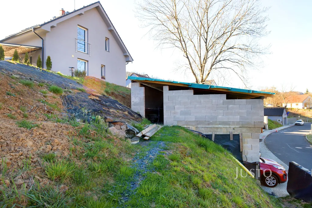 • parkování: prostorná garáž (230 V a 380 V) s vybudovaným patrem, aktuálně ve stavu před dokončením, dosud nezkolaudovaná + několik míst před domem