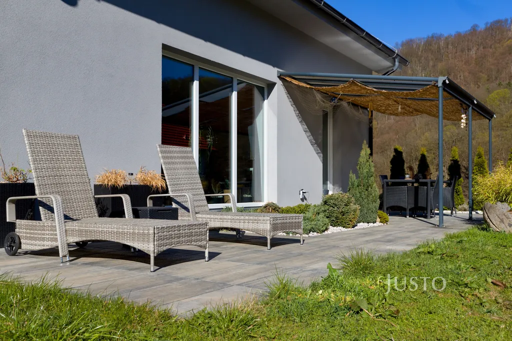 • kuchyňský kout plynule navazující na velký obývací pokoj se vstupem na zahradu