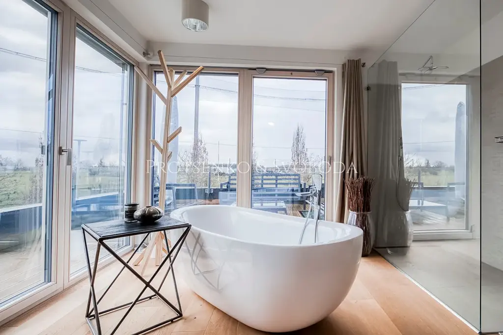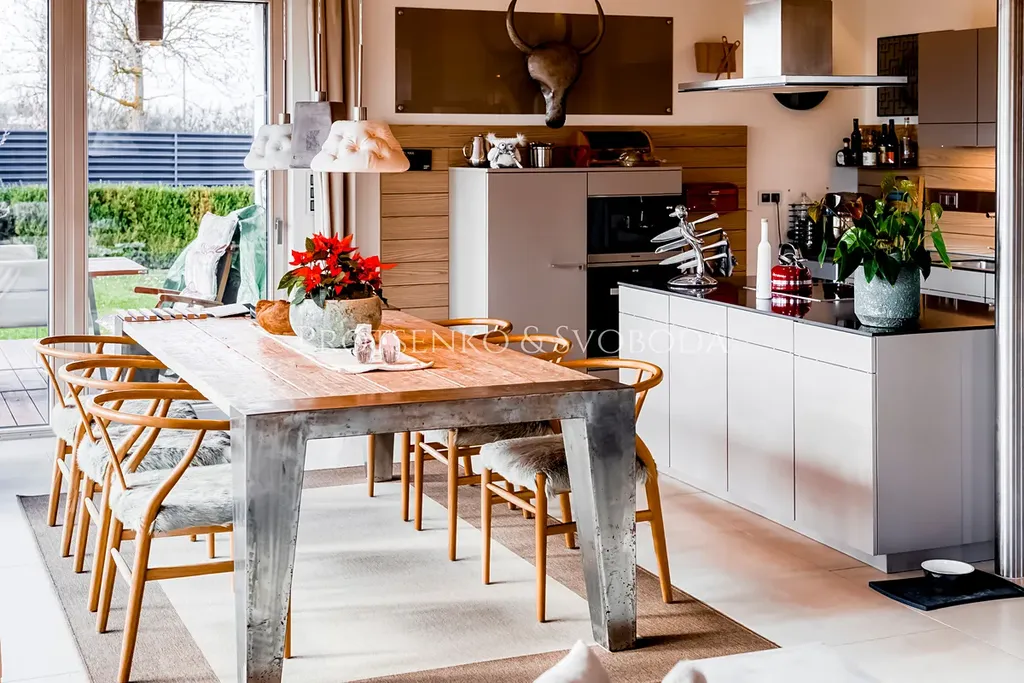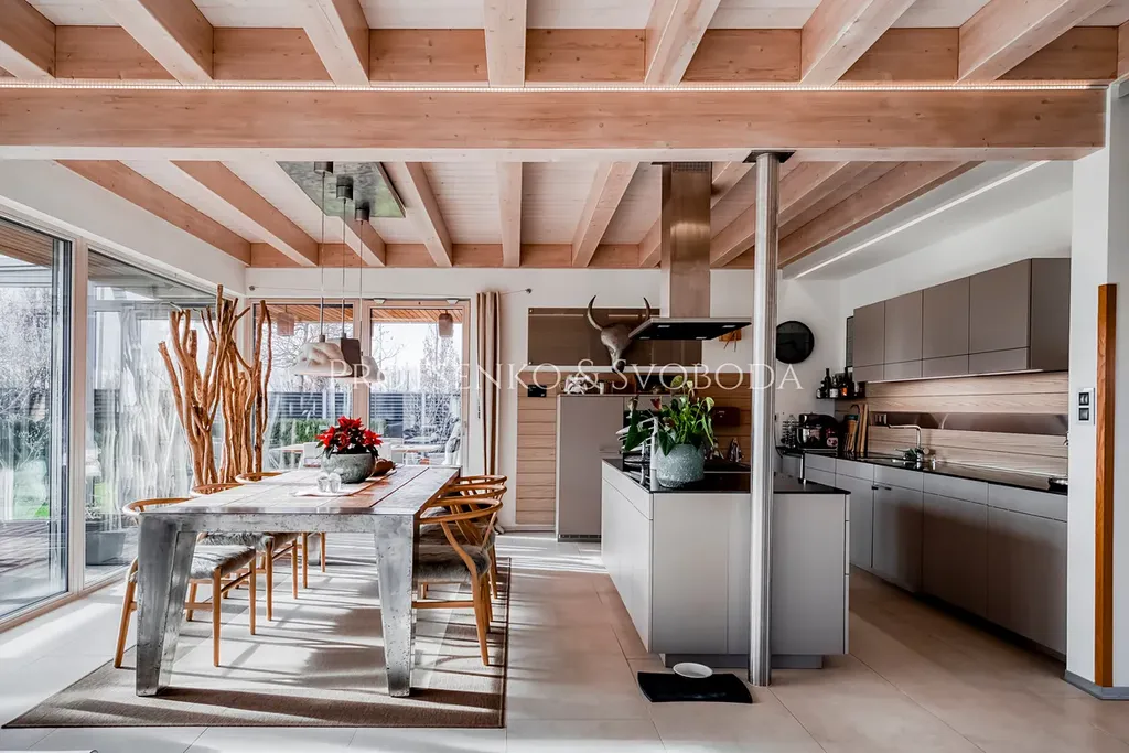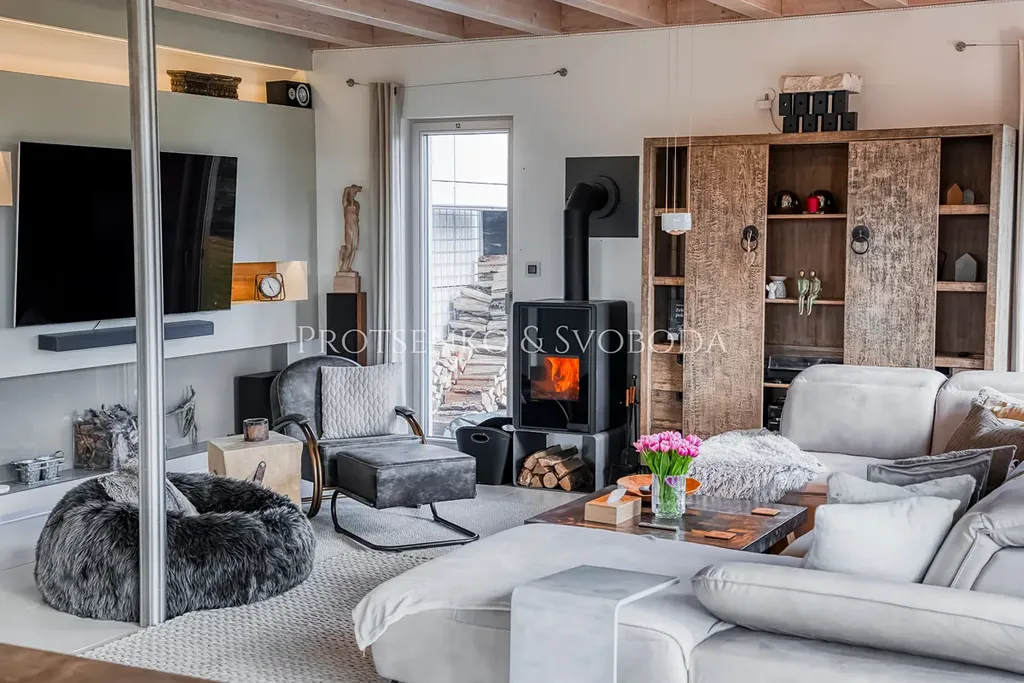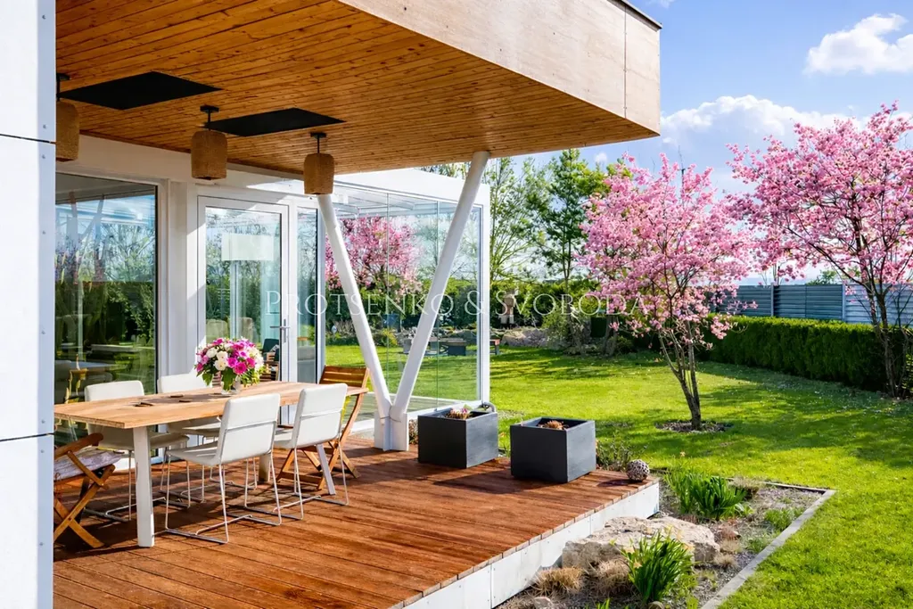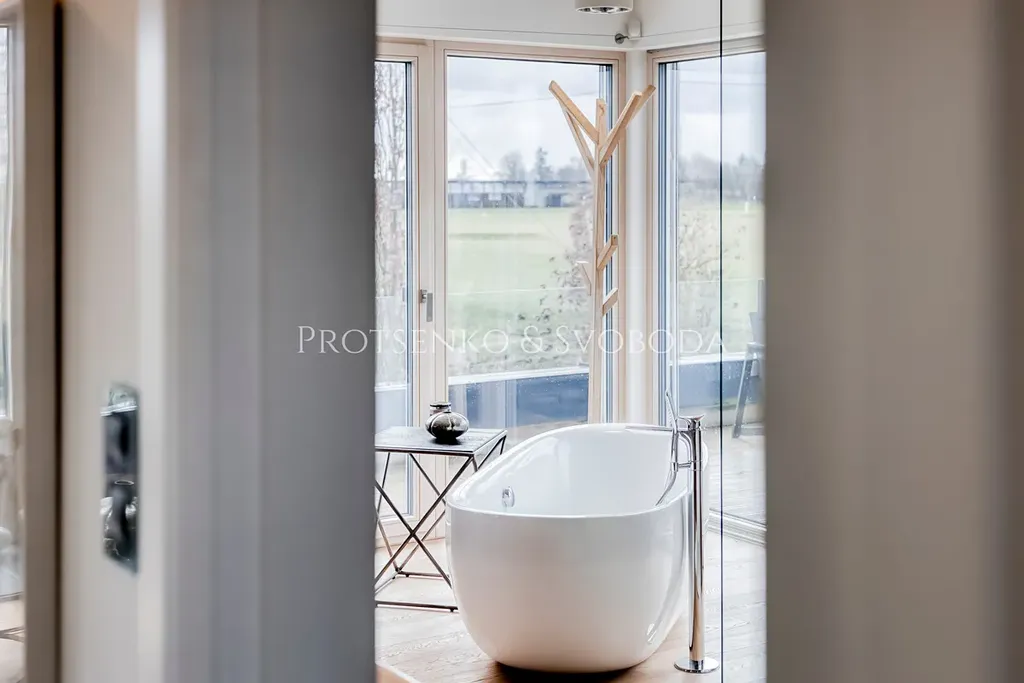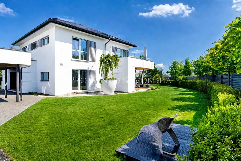 Spol. "Protsenko & Svoboda" nabízí k prodeji moderní dvoupodlažní dům, kde byly použity kvalitní a zcela přírodní materiály, stojí přímo u vyhlášeného golfového resortu kousek od Prahy. Stavba klade důraz na práci se světlem, otevřený prostor a dostatek vzduchu, a proto zde vládne neskutečně příjemná atmosféra.