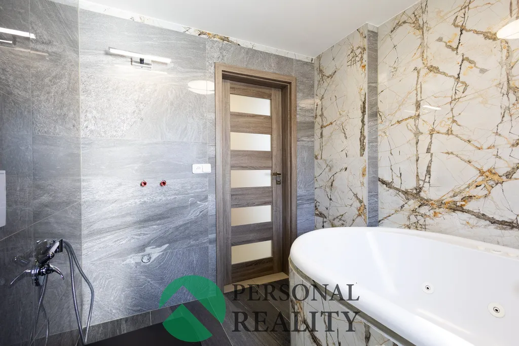 Jednotka v 1. patře má navíc k dispozici obrovskou terasu (cca 45m2), která se táhne podél celého prostoru obývacího pokoje a ložnice a je přístupná francouzskými okny.