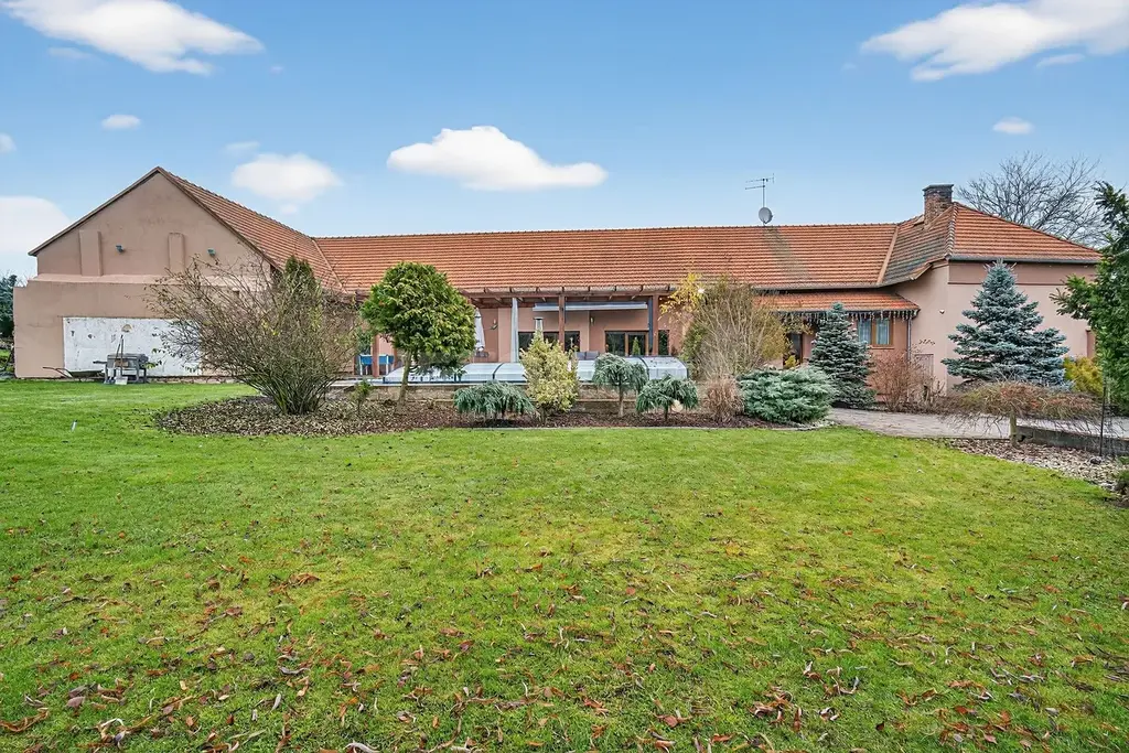 V srdci obce Chotíkov se nachází unikátní přízemní dům s podlahovou plochou přes 280 m², který nabízí komfort moderního bydlení a výjimečné soukromí. Dům disponuje prostornými ložnicemi, moderními koupelnami a luxusní kuchyní, ideální pro rodinné chvíle. S wellness zónou a širokým pozemkem o rozloze 2085 m² s bazénem a vířivkou, poskytuje ideální prostředí pro relaxaci a aktivní životní styl.