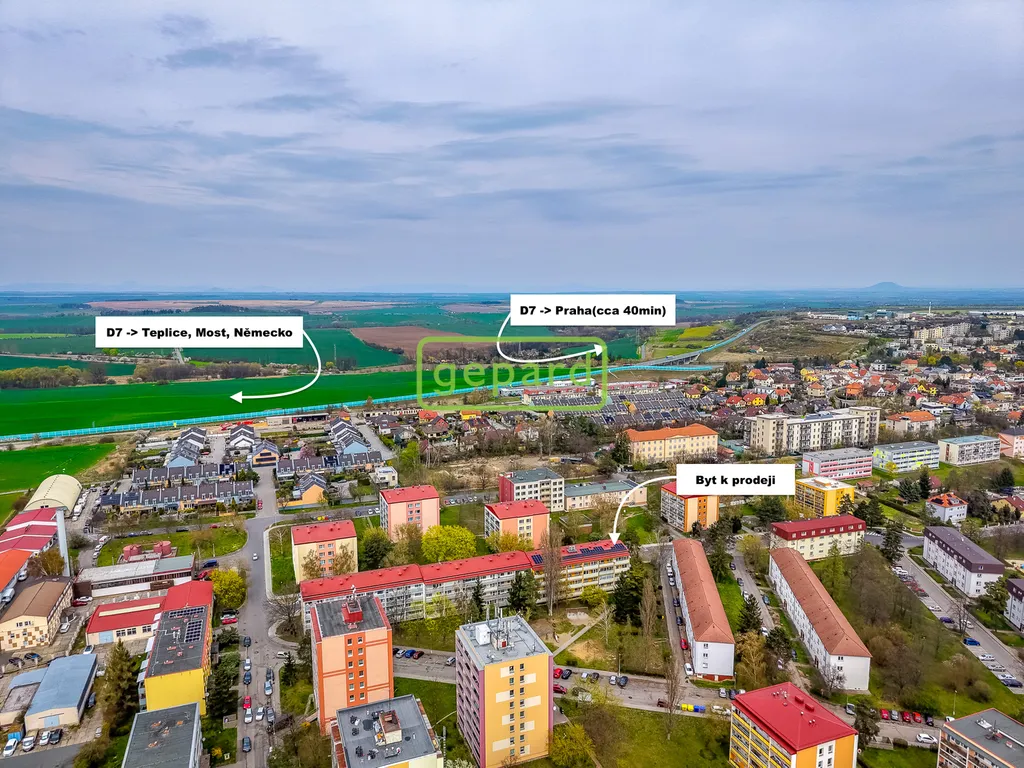 Výborná je i dopravní dostupnost – zastávka MHD se nachází přímo před domem s přímým spojením směrem na Prahu i Louny. V okolí najdete kompletní občanskou vybavenost i dostatek zeleně.