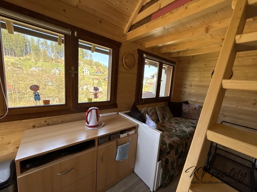 Ve výhradním zastoupení majitele nabízím prodej zahrady o CP 357 m2 s novou dřevěnou chatkou a pergolou ve městě Vsetín, chatová osada Amerika. Chata je dva roky stará a velmi pěkně řešená, nabízí velký prostor pro kuchyňku s pokojem, schodiště ke spací části, oddělený chemický záchod. Na pozemku je zavedena užitková voda, která lze připojit do chatky, elektřina. Pozemek i chatka jsou v osobním vlastnictví, celá zahrada je oplocená. Příjezd je po asfaltové cestě, asi 100 m je nutné dojít k zahradě pěšky. Celá osada je oplocená a uzamčená, ročně se platí 200,- Kč za vodu, elektřina dle spotřeby. Jedná se o velmi pěkné, celodenně slunné místo s krásným výhledem na město Vsetín a na okolní lesy a přírodu. Na zahradě se nachází také menší dřevěná kůlna na nářadí a nový fóliovník. Výborná dostupnost do města a všestranné využití, pěstování zeleniny a ovoce, relax, příležitosti na procházky, houbaření, cyklistika. Doporučuji prohlídku, pro více informací volejte RK.