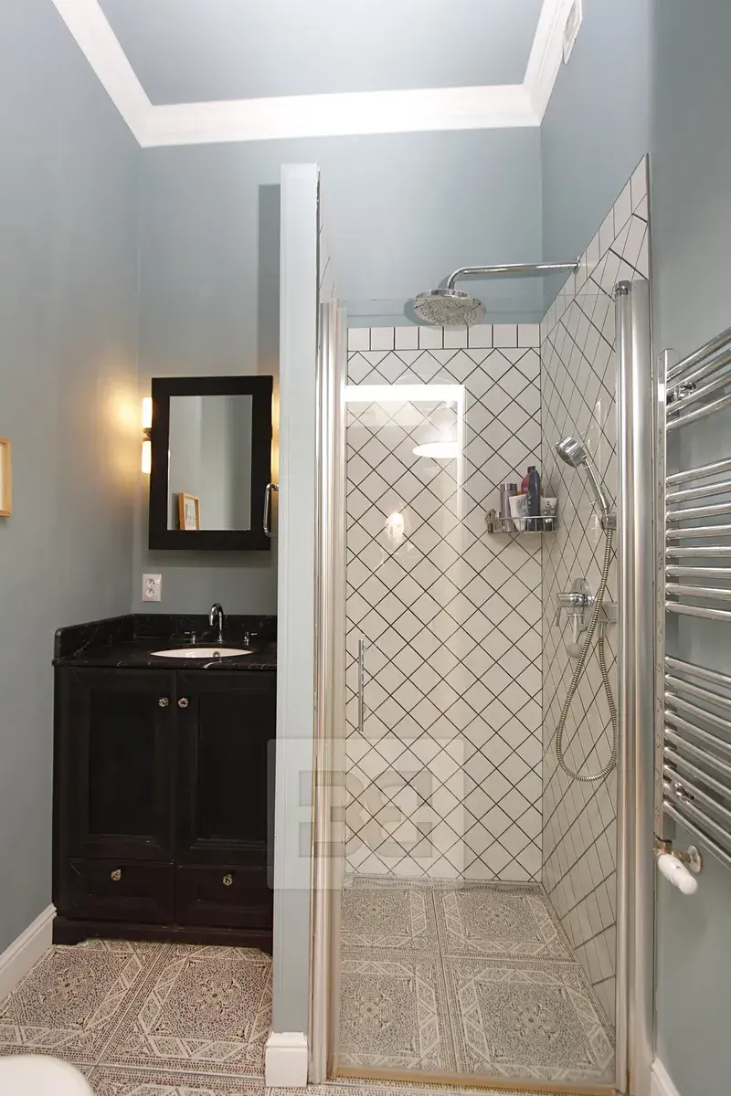 Byt je velice světlý a vzdušný díky vysokým stropům a velkorysým místnostem.