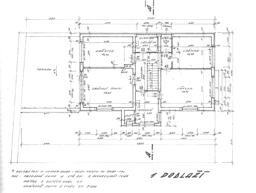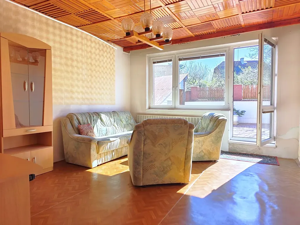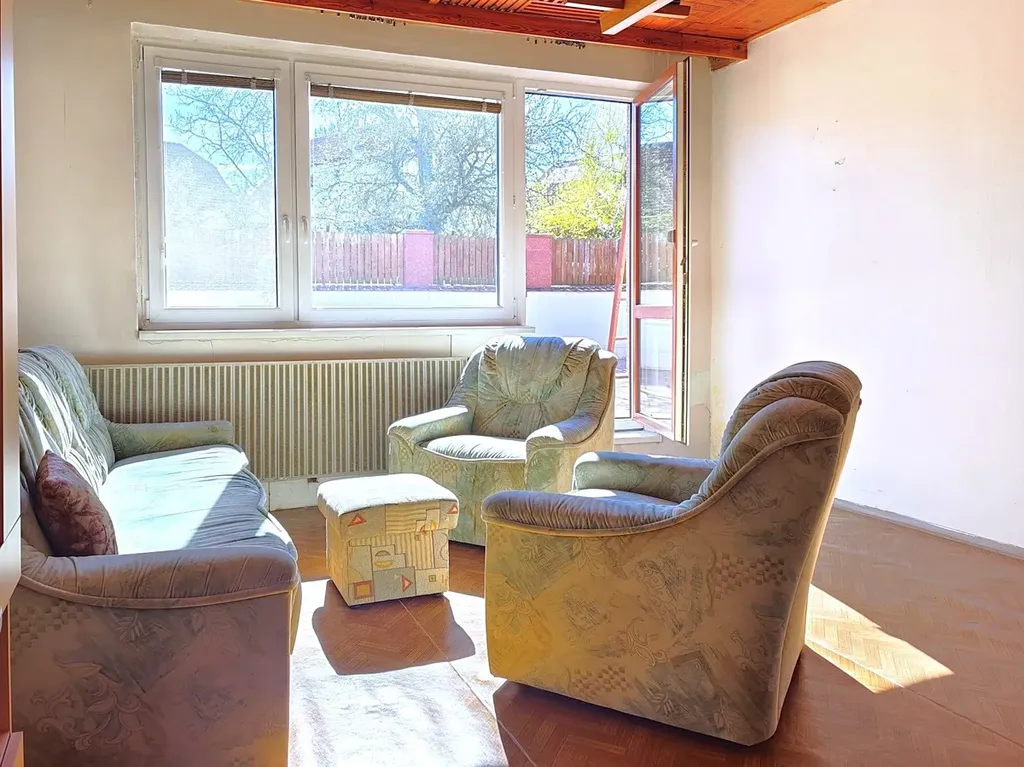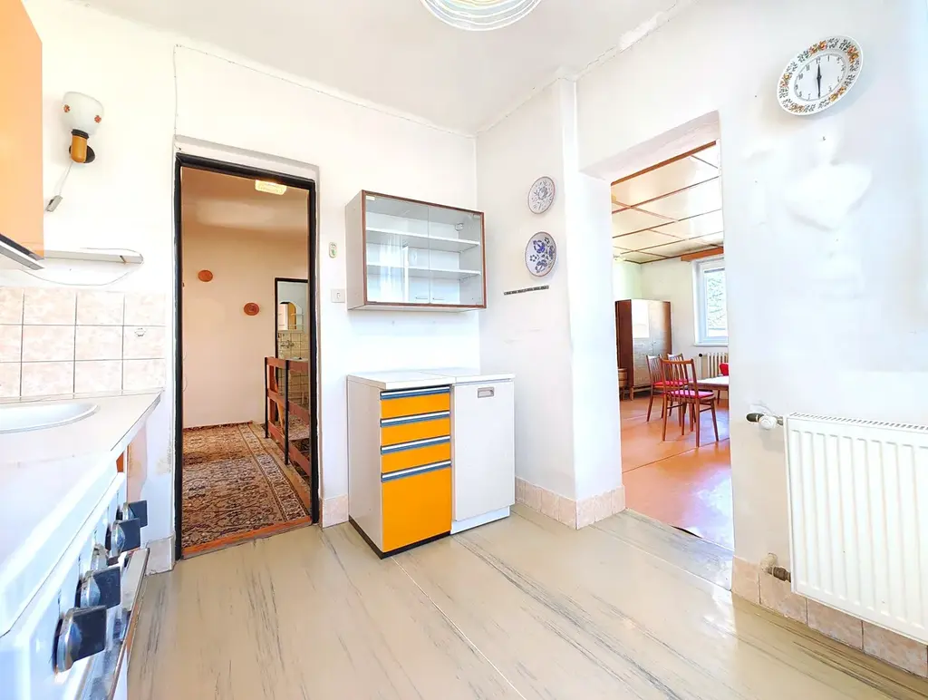 Rodinný dům o dvou nadzemních podlažích (+ sklep) z roku 1980 nabízí dostatek prostoru pro velkou rodinu nebo pro fungování dvou samostatných bytových jednotek. K hornímu bytu (4+1) náleží velká terasa nad garáží s orientací na jiho-západ, která nahrazuje posezení na zahradě a v létě zafunguje jako druhý obývací pokoj. Stejné zázemí poskytne dolnímu bytu (3+kk) dvorek, který se ještě zvětší po případném zbourání dřevěné stodoly.