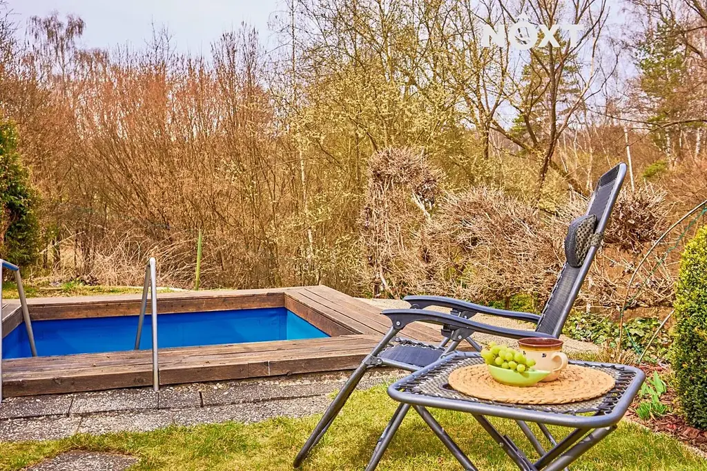Velkým benefitem je venkovní část. Kromě zahrady kde můžete pěstovat je zde bazén pro letní dny, pergola pro posezení a také samostatný altán s krbem, ve kterém je zabudovaná i udírna ideální na grilování nebo víkendové posezení s přáteli. Nechybí ani prostor pro vlastní pěstování. Odpad je řešen septikem, přičemž dle majitele nebylo dosud nutné jeho vyvážení. Lokalita nabízí klid a soukromí, přitom do centra Českého Krumlova se dostanete pohodlně pěšky. Skvělé místo jak pro relax, tak i jako investice. Pro komunikaci uvádějte evidenční číslo zakázky N117330.