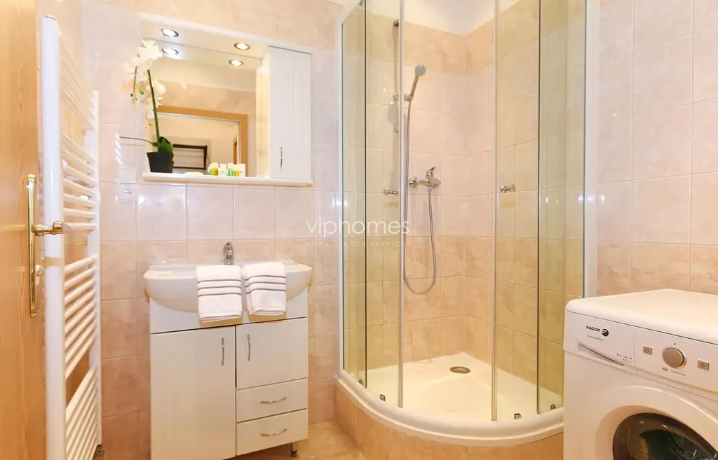 Komfortně zařízený byt umístěn ve 3 patře klasického vinohradského bytového domu s výtahem. Klidná ulice v srdci pražské elegantní čtvrti Vinohrady, jen pár kroků od parku Grébovka, v pěším dosahu stanice metra Náměstí Míru a hlavních linek městské dopravy. Najdete zde jak významná nákupní centra např. Palác Flóra a Vinohradský pavilon pro pohodlné nákupy, tak i divadla, množství zeleně a možnosti k posezení ve stylových kavárnách a restauracích.