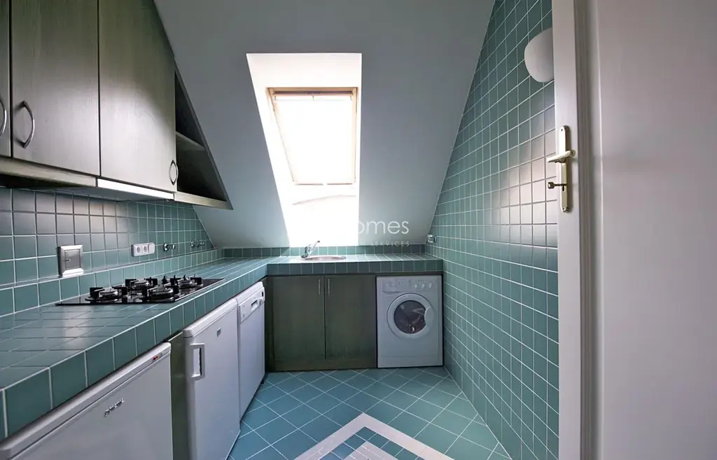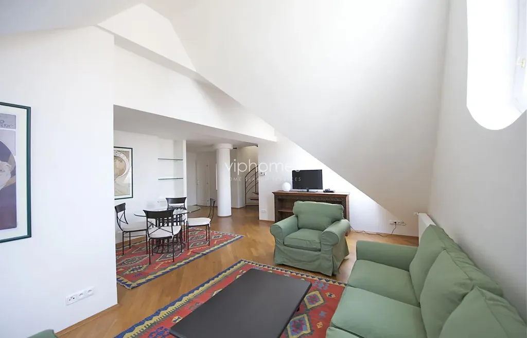 V úrovni vstupu byt disponuje útulným obývacím pokojem s jídelním koutem, vybavenou moderní kuchyní, koupelnou a ložnici se šatnou. Horní patro se sestává ze druhé ložnice se šatnou a koupelny. Vybavení bytu :podlahy dřevo-masiv, vestavěné skříně, pračka se sušičkou, myčka nádobí, telefonní linka, internetové a satelitní TV připojení, domácí videotelefon. V přilehlých ulicích je zavedený pražský systém parkovacích zón a rezidenti mají nárok na parkovací karty. Možnost parkování v nedalekých garážích poblíž, cca 300 m / modrá zóna.