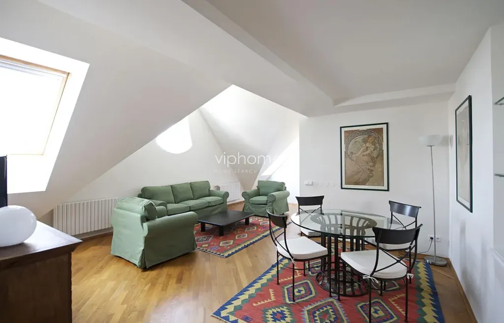 Stylově zařízený mezonetový byt 3+1 v v 5. a v 6. patře kompletně zrekonstruované historické budovy, situované v těsné blízkosti Karlova náměstí, v pěším dosahu tramvají a metra, s dobrou dostupností do celé Prahy. Veškerá občanská vybavenost v nejbližším okolí.